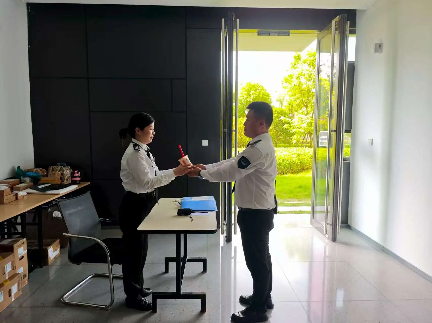 当承载着集团关怀的奶茶送到华润分支队保安员们手中时,现场被一股温馨的氛围包围。队员们刚刚结束一轮紧张的执勤,脸上带着些许疲惫。有的队员迫不及待地打开奶茶,猛吸一口,冰凉的甜意在口腔中蔓延,驱散了身体的燥热,脸上露出了满足的笑容;有的队员则相互分享着这份喜悦,你一言我一语地谈论着集团的这份关怀,话语中充满了感激。这一杯杯奶茶,不仅仅是夏日里的一份清凉,更是集团对员工沉甸甸的关爱。