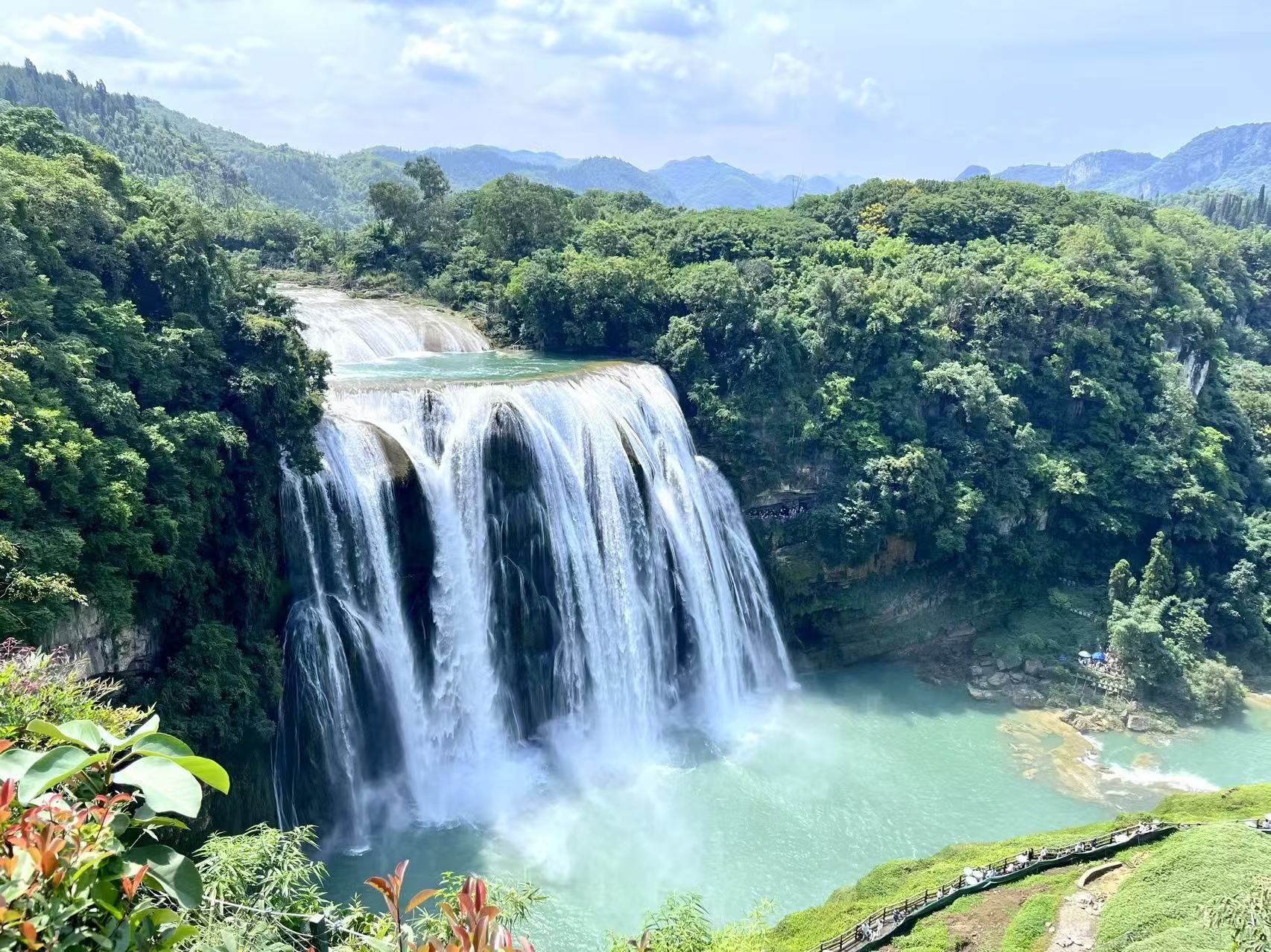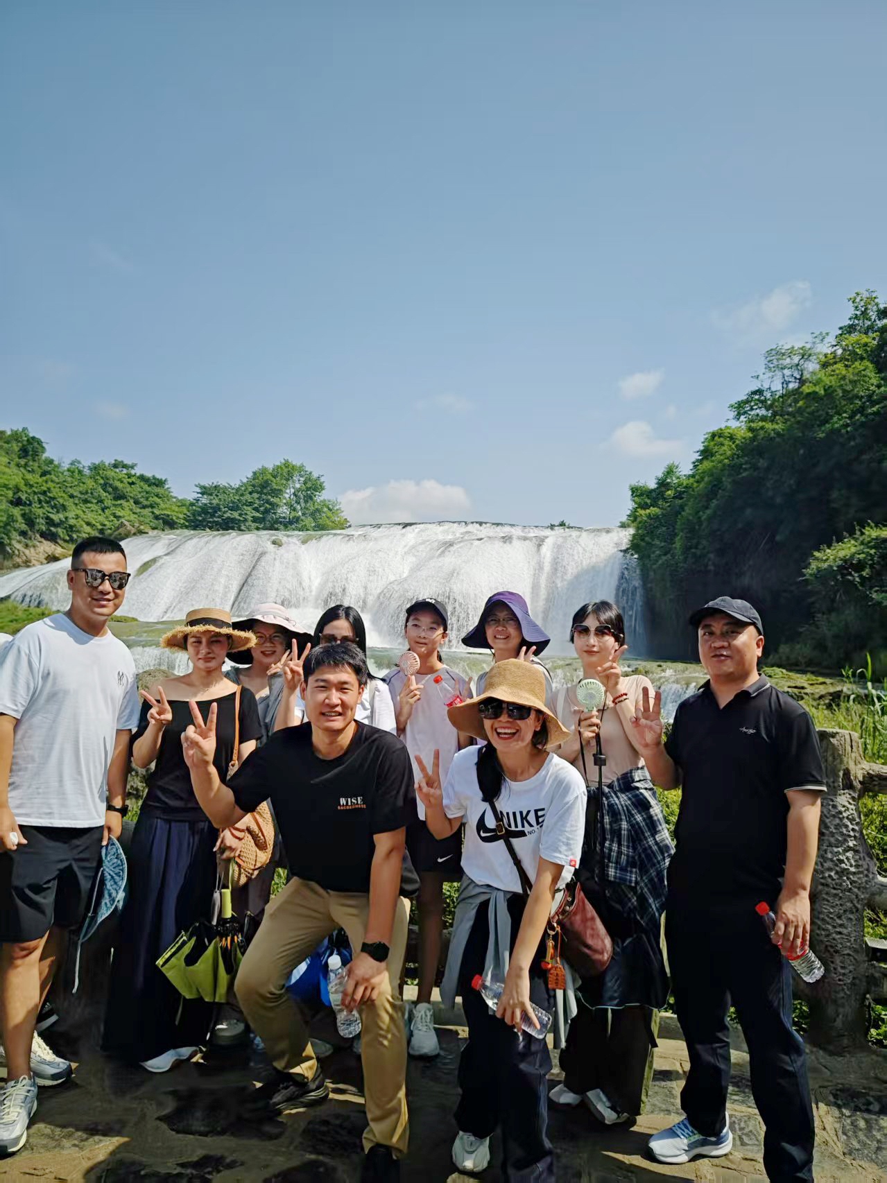 7 月 18 日,团队从贵阳出发,奔赴黄果树瀑布景区,开启了一场与自然奇观的对话。上午游览黄果树瀑布、天星桥景区与陡坡塘景区,亚洲第一大瀑布的磅礴气势、天星桥的泉水飞瀑、陡坡塘的宽阔独特,让大家在惊叹自然之美的同时,更体会到 “同行” 的意义 —— 面对陡峭的山路,有人主动搀扶;看到绝美的风景,大家争相拍照分享;休息时递来的纸巾、分食的零食,让团队的温暖在山水间流淌。