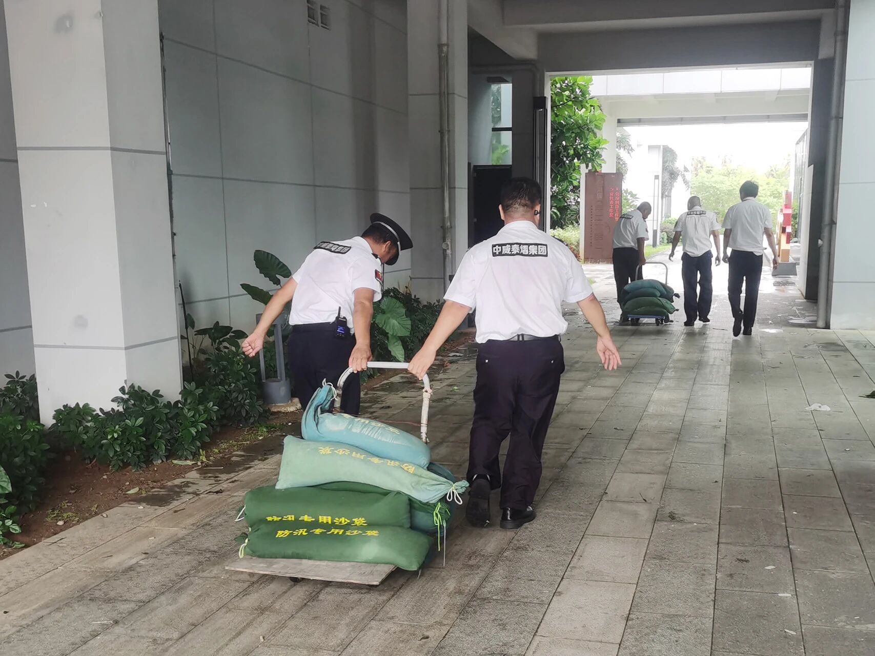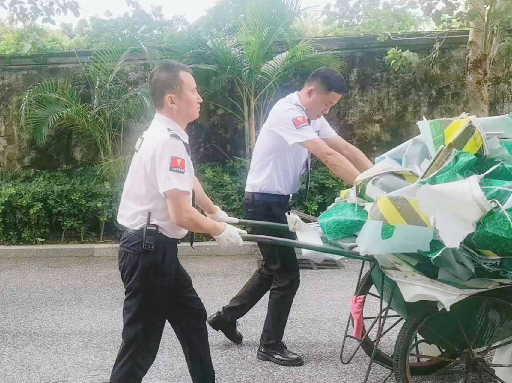灾后恢复的每一项工作都充满挑战,但中威泰熠保安集团工作人员始终奋战一线。汗水浸透衣衫,疲惫难掩坚守,他们紧绷臂膀清除断枝,反复核查修复设施,逐点排查安全隐患,全力守护每一寸区域。