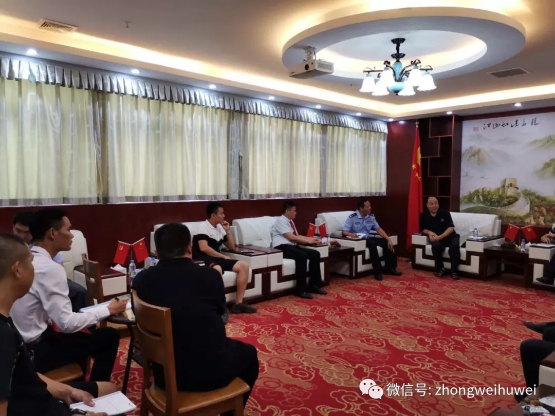 2019年7月4日下午,广西壮族自治区公安厅蓝副支队长、保安协会朱秘书长、北海市治安支队大队长王春远、北海市治安支队副队长蒋辉一同陪行,组织北海市十几家保安公司到我司召开会议。