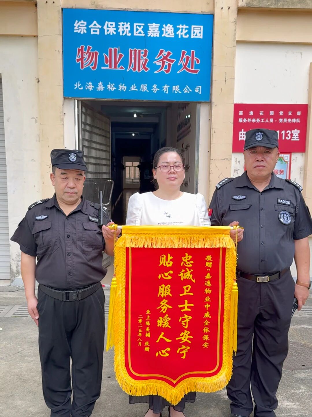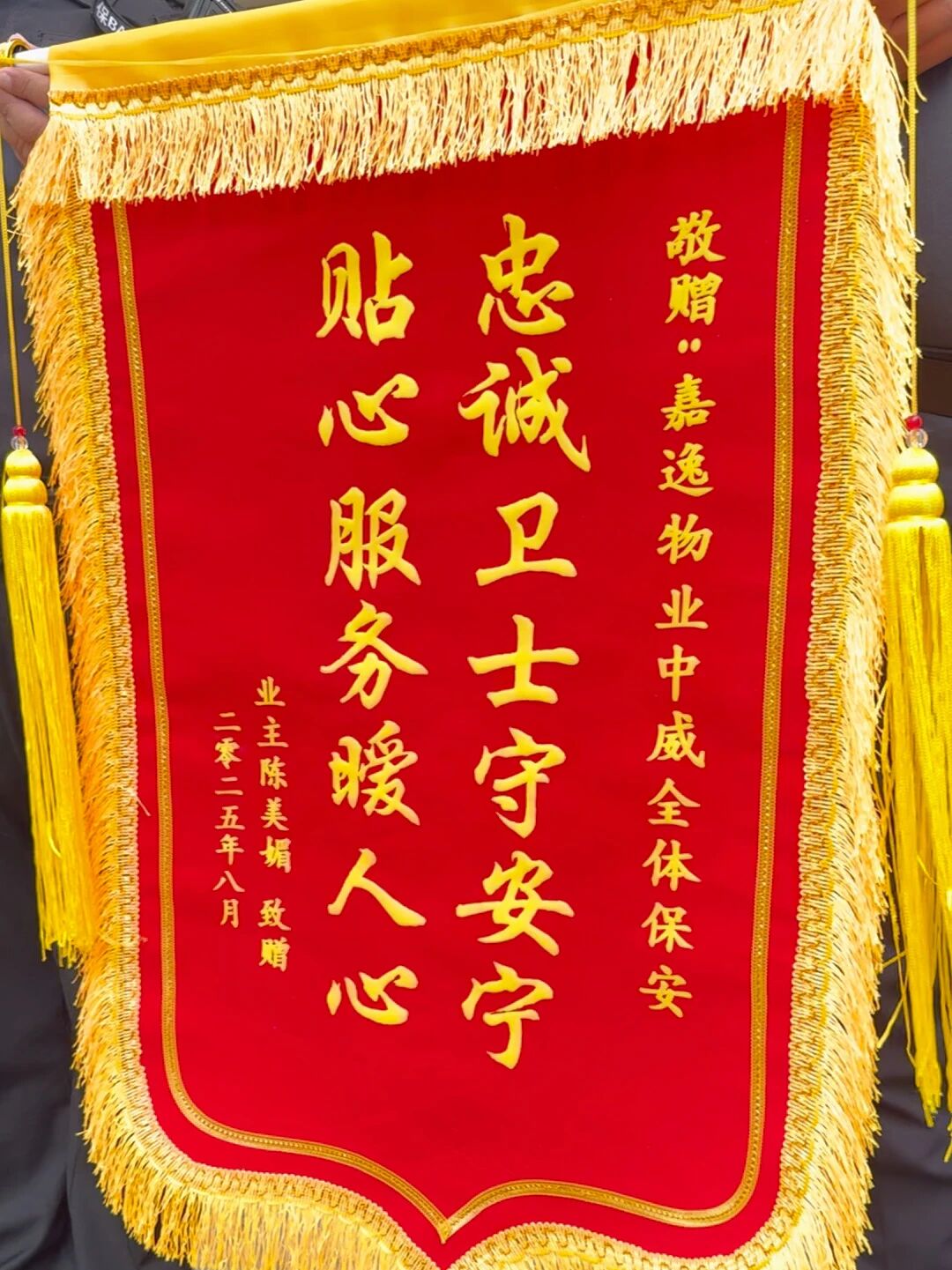 锦旗致谢暖人心---中威泰熠保安集团嘉逸花园分队获业主认可